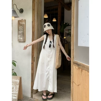 | nameOriginal | Age-reducing V-neck vest dress summer loose linen |