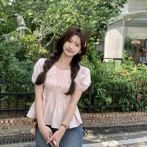 | nameOriginal | Age-reducing women's petite slim-fit babydoll shirt with bow tie |