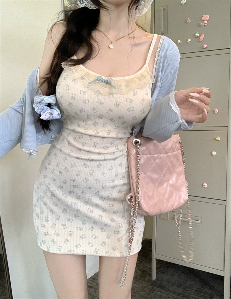 Age-reducing women's summer long-sleeved cardigan with bear print lace