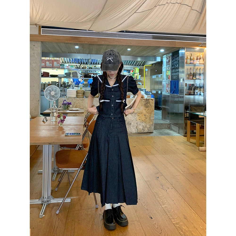 | nameOriginal | Age reduction suit women's summer navy collar denim shirt |