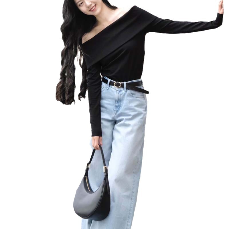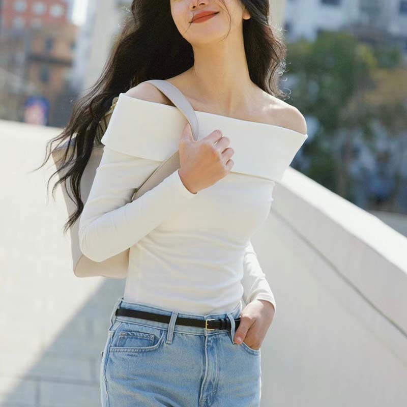 | nameOriginal | Agent early spring new sweater women's skin-friendly slim fit fashionable off-shoulder collar t-shirt off-shoulder top bottoming shirt sexy |