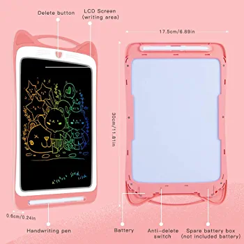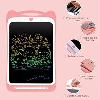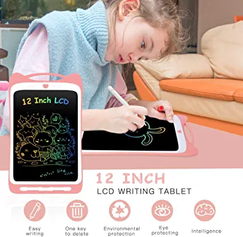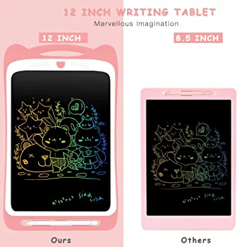 This Writing Tablet adopts advanced 12 inch LCD colorful screen, much larger than 8.5inch and 10inch electronic writing board on the market. There is no radiation and safe to use. Larger screen and brighter color, which enables kids display their incomparable imagination and enjoy it!