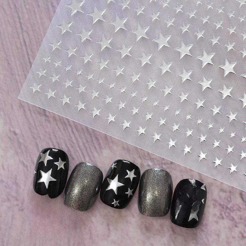 Aha Nail Glue Sticker White Black Bronzing Silver Moon Mini Four Mans Star Nail Decal