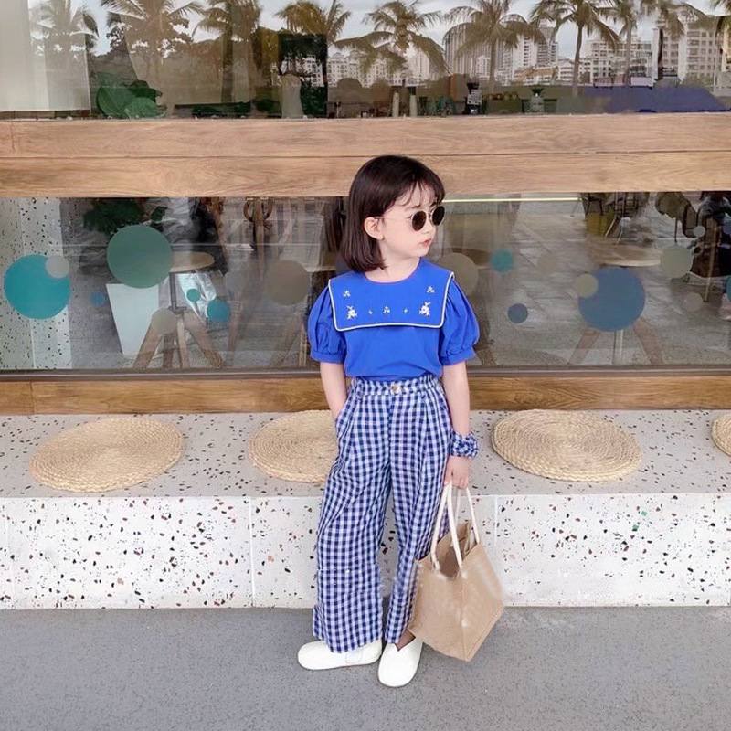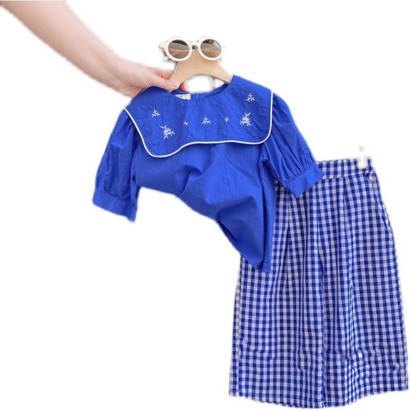 | nameOriginal | Ai Le Rabbit 2022 Summer New Girls' Suit Korean Short-sleeved Top with Plaid Wide-leg Pants Two-piece Set |
