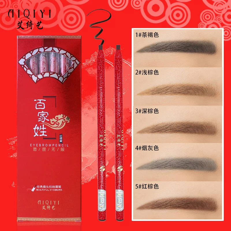 Ai Qiyi eyebrow pencil is waterproof, sweatproof, natural, long-lasting, non-fading and smudge-proof, makeup artist student with flat head and duck-bill head