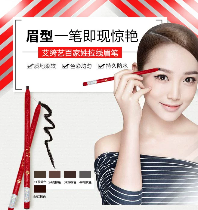 Ai Qiyi Line Eyebrow Pen, Waterproof Sweep, Natural lasting, does not decollerate without discoloration, dropped scum flat head duck head makeup artist student