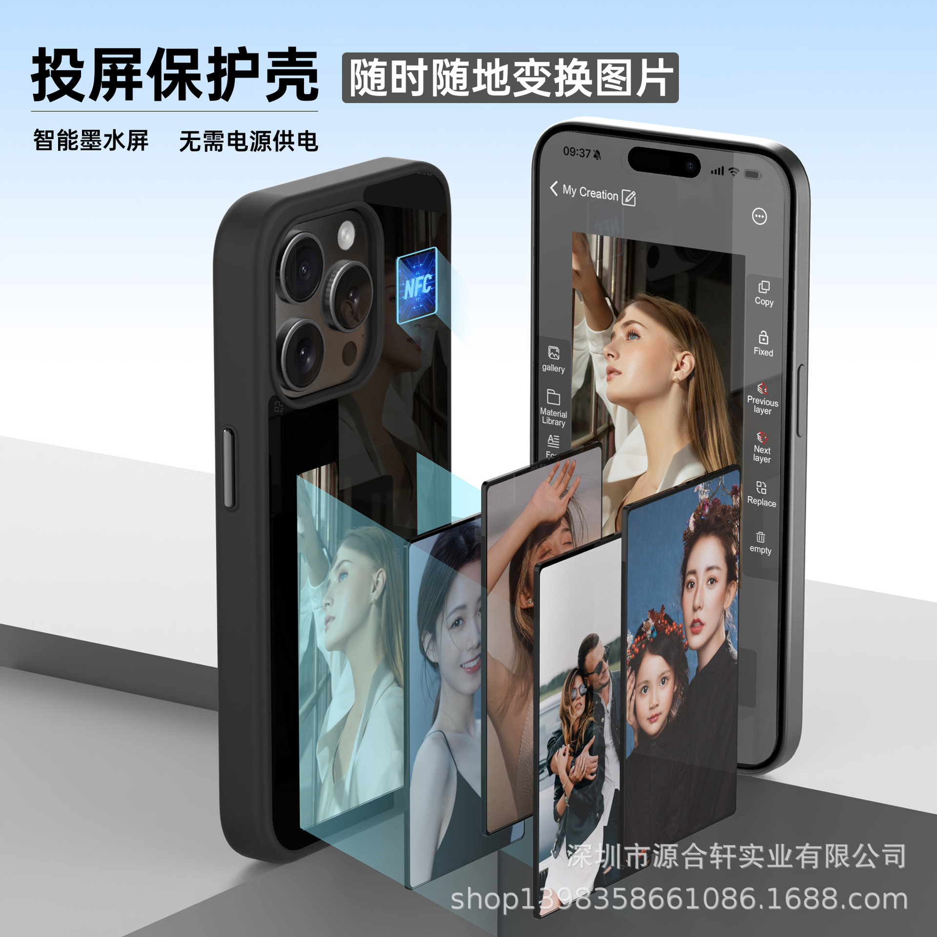 | nameOriginal | AI smart four-color ink screen phone case NFC personality screen color DIY ink screen screen phone case manufacturers |