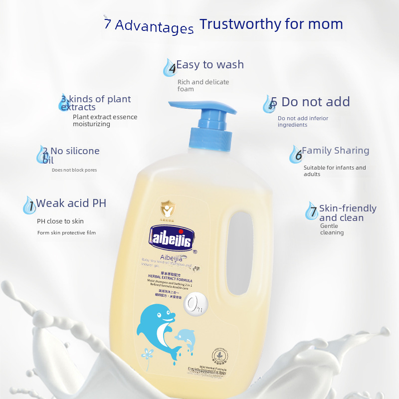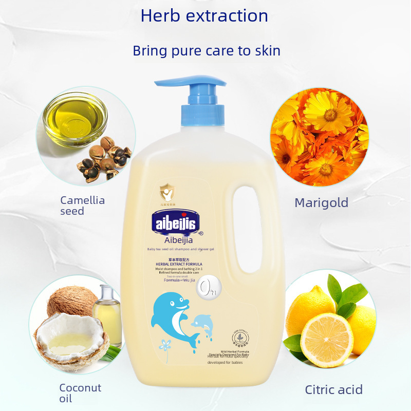 | nameOriginal | Aibeijia 1L large bottle of camellia oil children's washing and protection products baby washing and bathing two-in-one baby shampoo and shower gel |