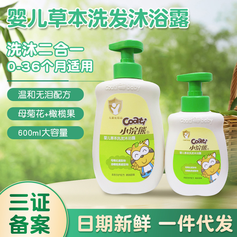 Aibeijia Peach leaf baby wash and care two-in-one moisturizing moisturizing tea seed oil baby children shampoo shower gel