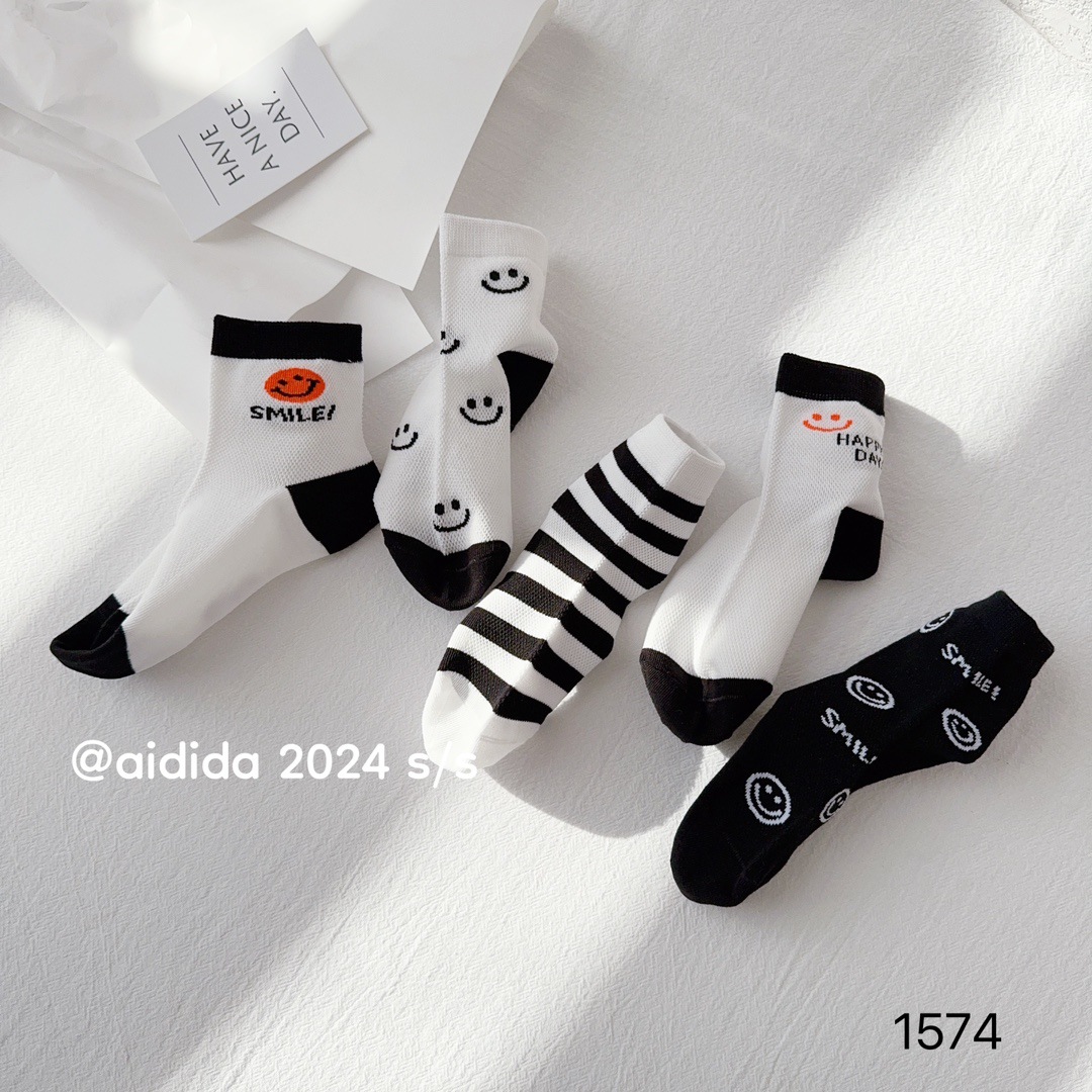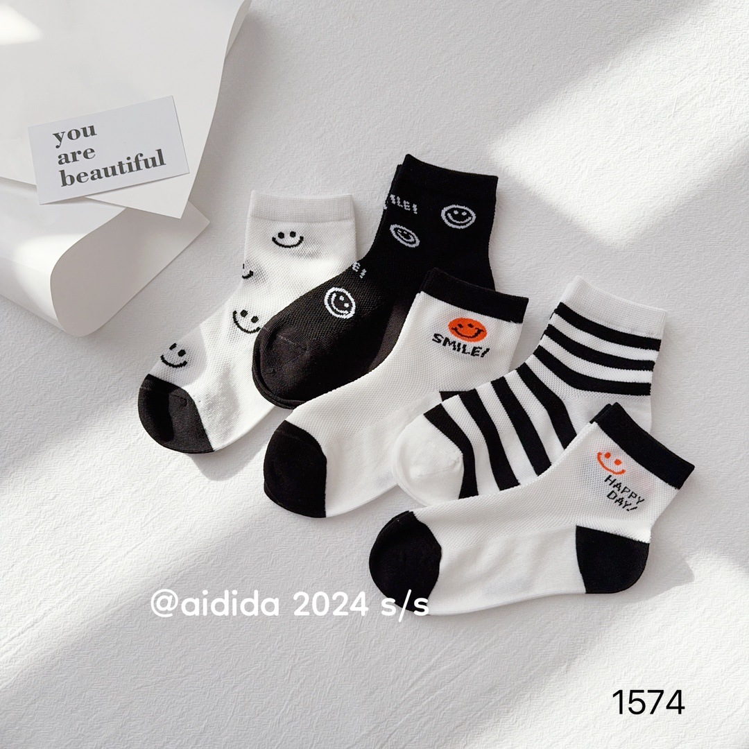 | nameOriginal | Aidida children's socks spring and summer new wholesale thin mesh boys and girls black and white Korean style smiley cotton socks |