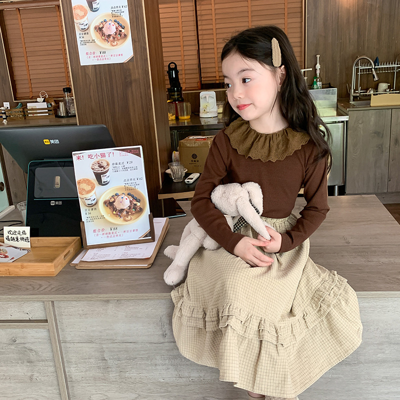 | nameOriginal | Aimo Beibei children's clothing Korean Autumn New girls' Western style soft cashmere pit lace collar bottoming shirt |
