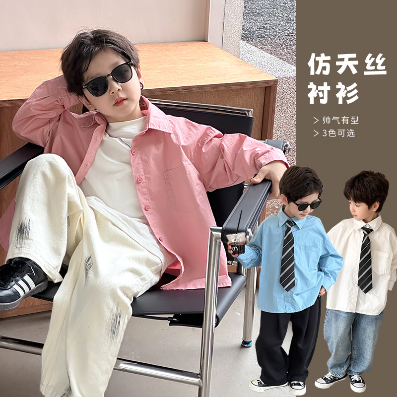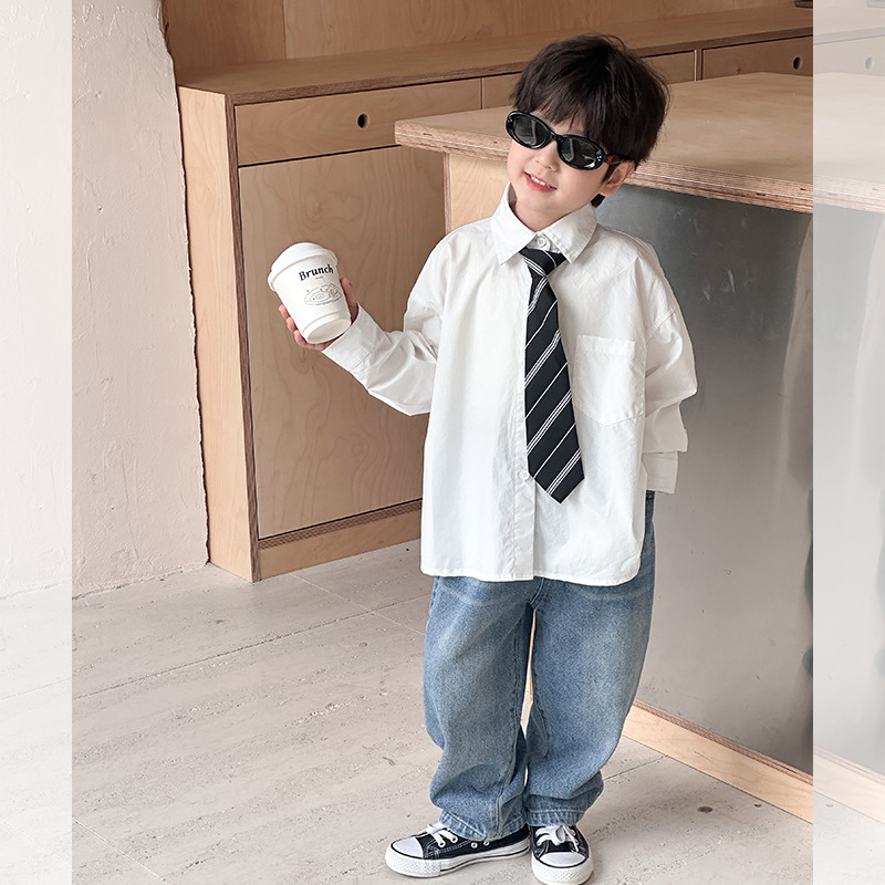 | nameOriginal | Aimo Beibei children's tie shirt boys and girls 2024 spring versatile loose lapel top baby temperament shirt |