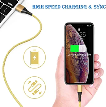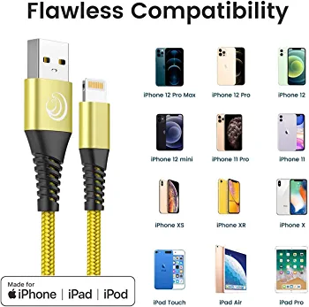 Introducing our 2m iPhone lightning cable in a stunning gold color. This charger lead is compatible with a wide range of Apple devices, including the latest iPhone 13 models, as well as older models like the iPhone 6 and iPad mini.