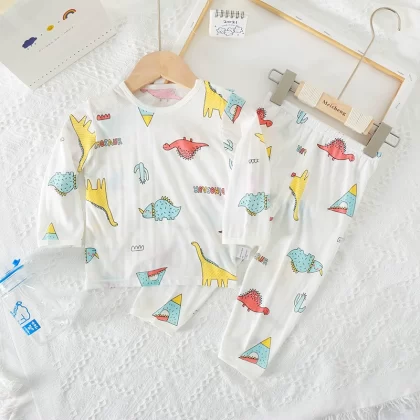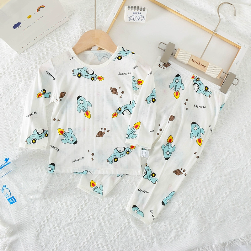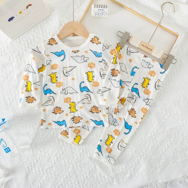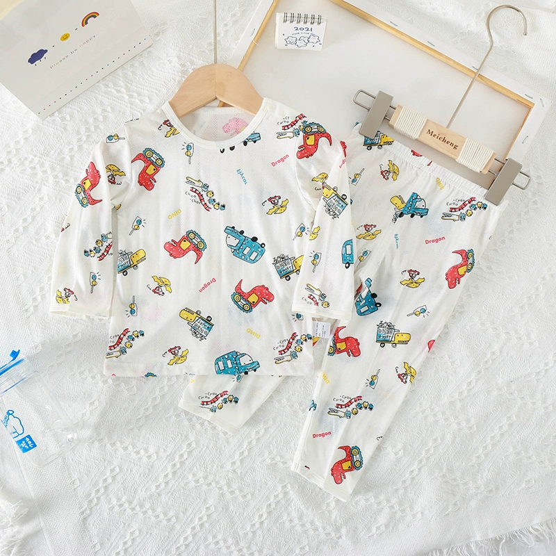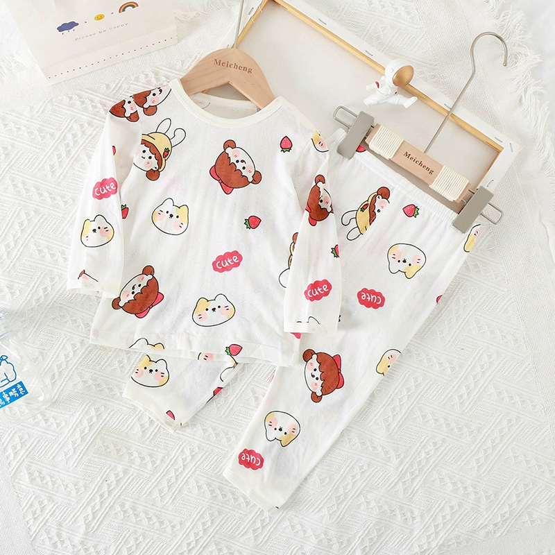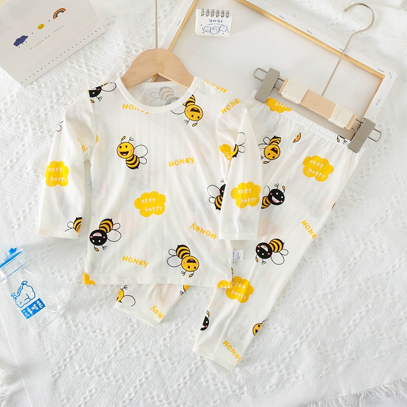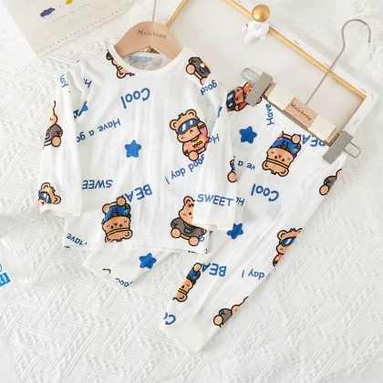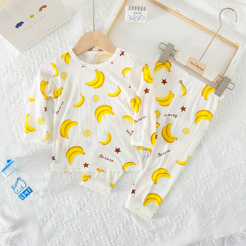 Air conditioning clothing summer baby bamboo fiber pajamas set