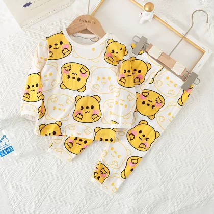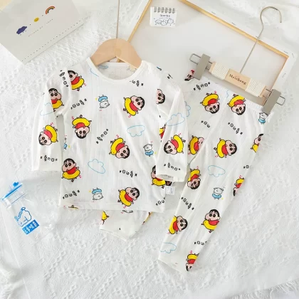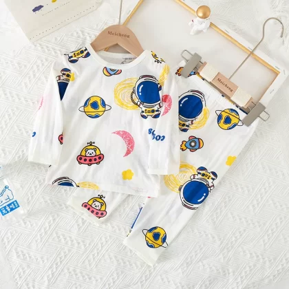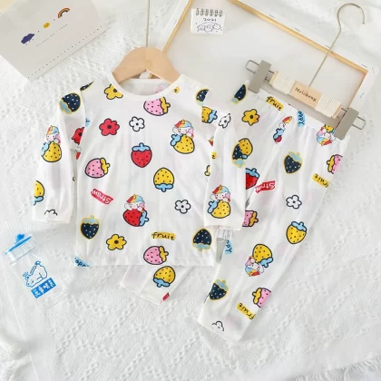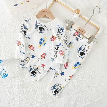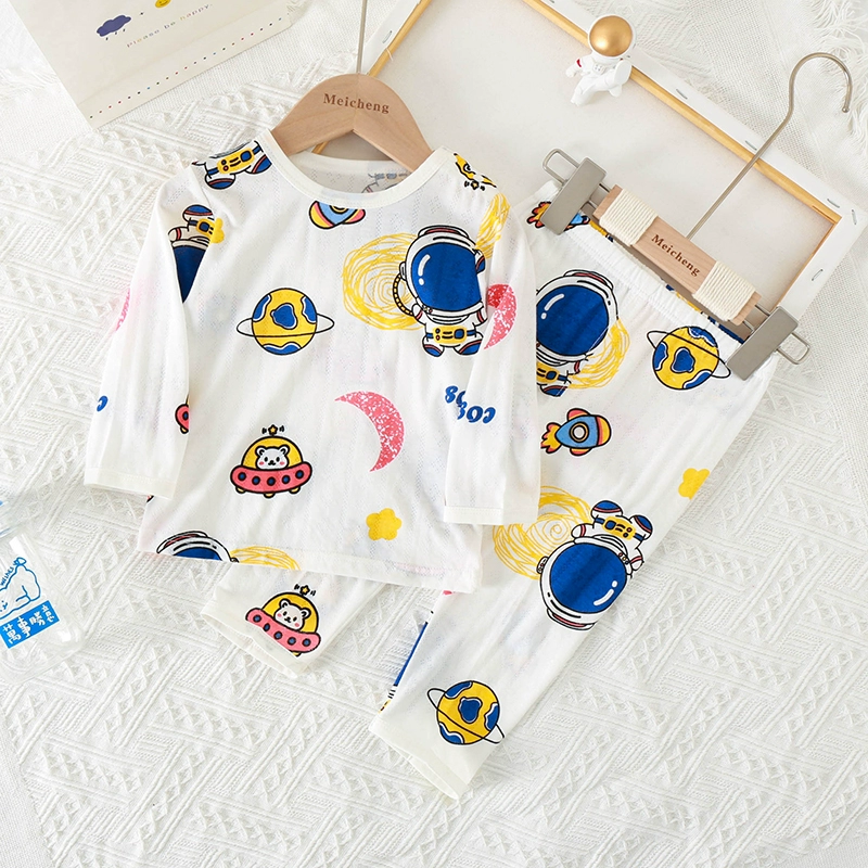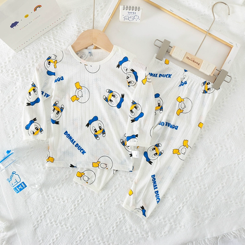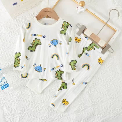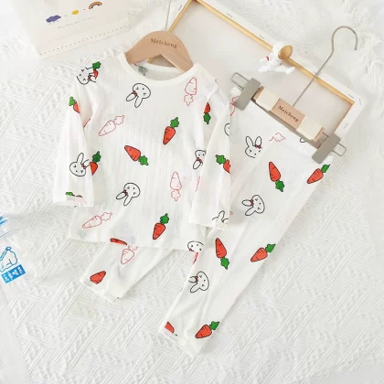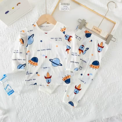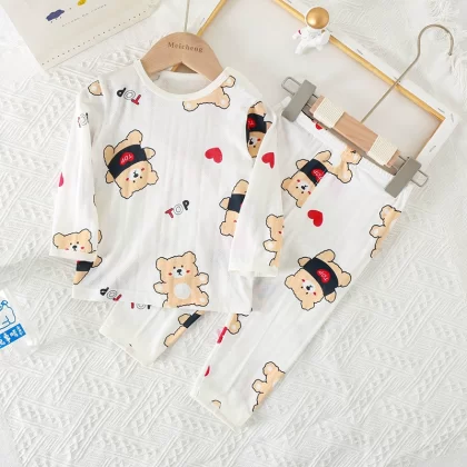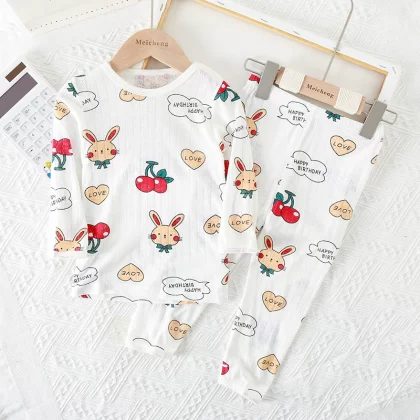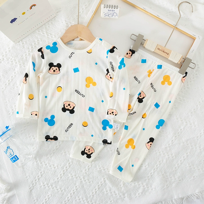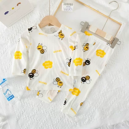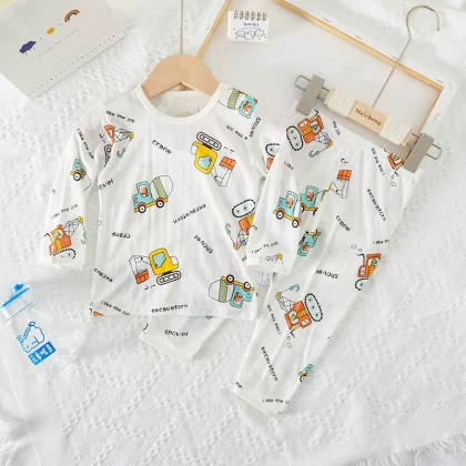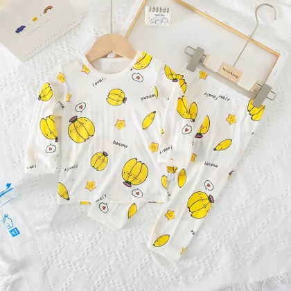 Air conditioning clothing summer baby bamboo fiber pajamas set