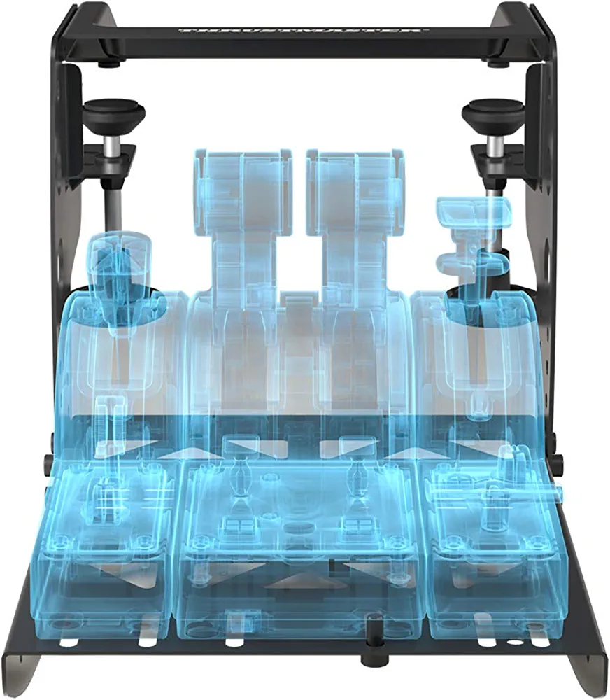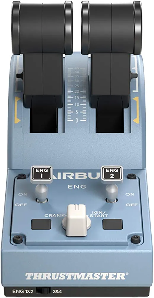 The Airbus TCA ecosystem offers many optional add-ons to enhance your immersion in games. Check out the TCA Sidestick Airbus Edition, TCA Quadrant Add-On Airbus Edition, TM Flying Clamp, and the famous TFRP rudder system (all sold separately) for breathtaking flying sessions. Experience the thrill of flying with the TCA Quadrant Airbus Edition.