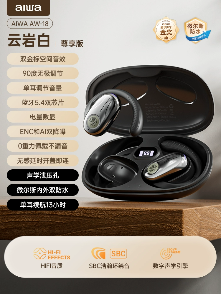 | nameOriginal | aiwa Aihua AW18 Bluetooth headset 5.4 wireless ear-mounted air bone conduction non-ear sports running new model  |