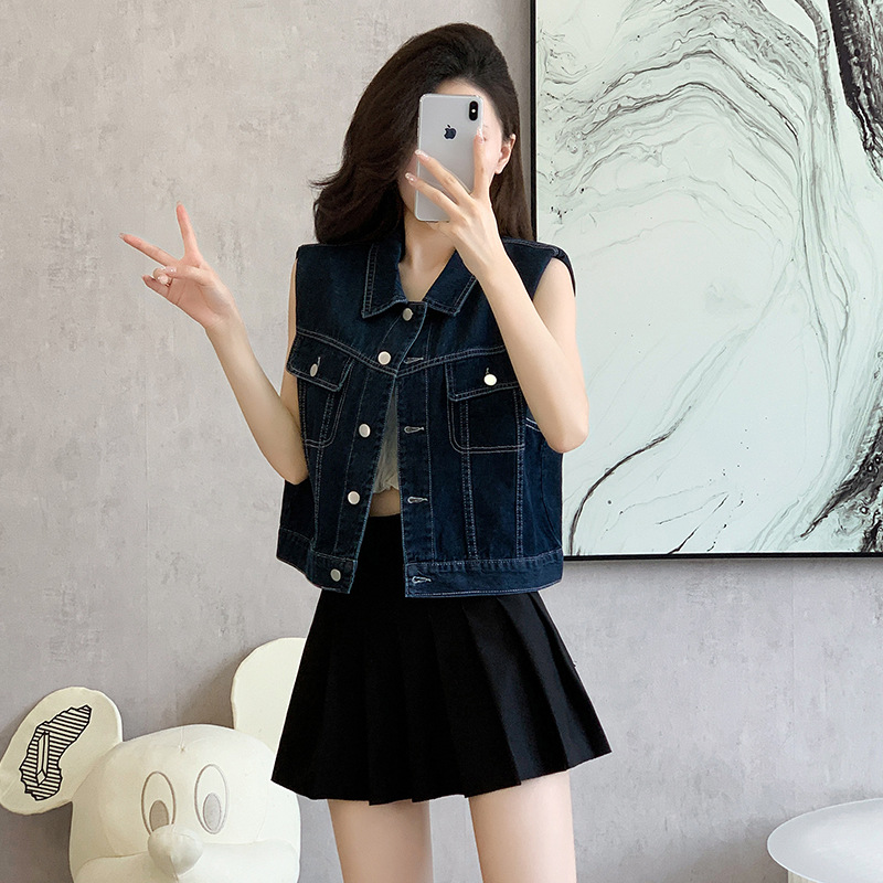 | nameOriginal | Aiyixuan Korean Style Vintage All-match Stacked-up Denim Vest Women's Summer New Loose Fashionable Slim Look Cardigan |