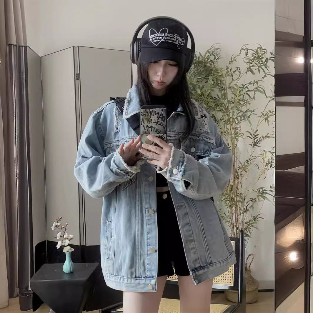 | nameOriginal | Aiyixuan Retro Hong Kong Style Denim Jacket Women's Spring New Design Niche Loose All-match Long-sleeve Top |