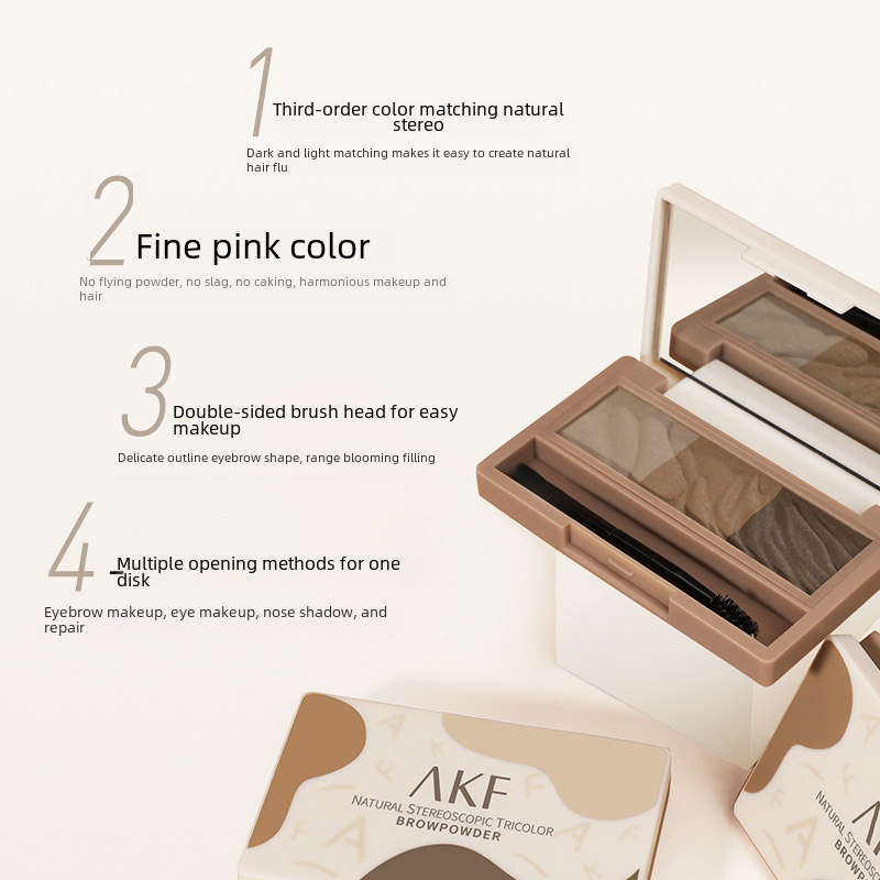 | nameOriginal | AKF Eyebrow Powder Plate Three-color Eyebrow Pen Makeup Anti-sweat Not Easy to Decolorization Not Easy to Snoiling Natural Three-dimensional Official Flagship Store |