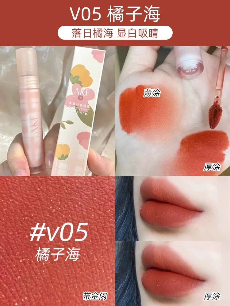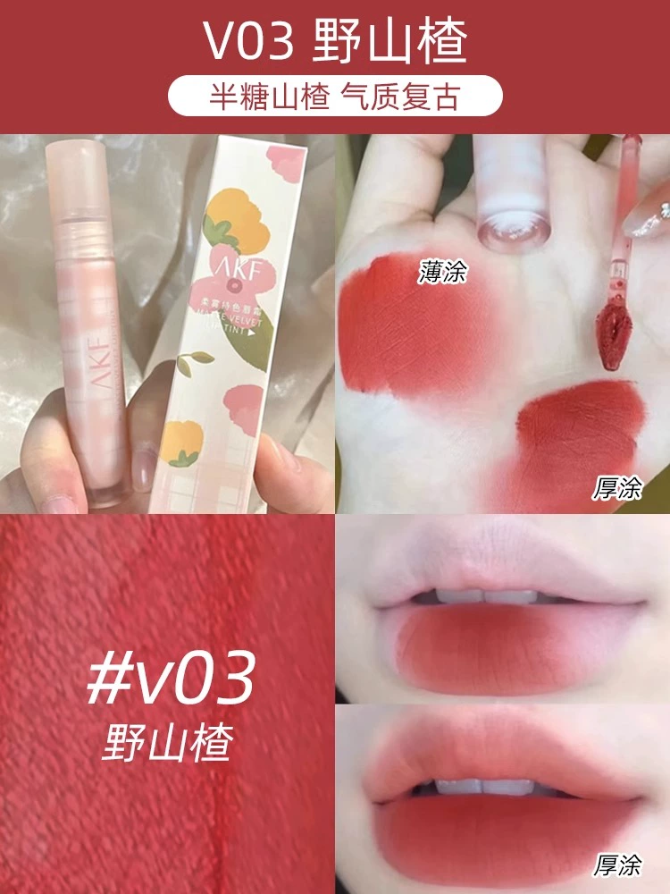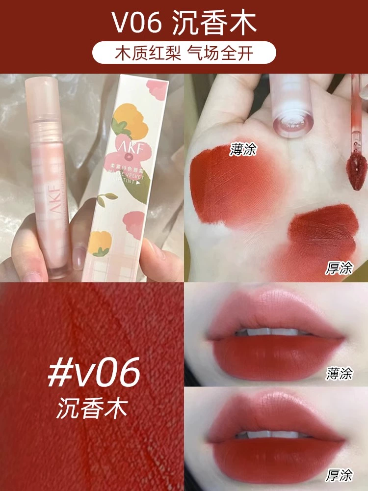 | nameOriginal | AKF lip glaze lip mud lip cream v01 hibiscus tea non-stick cup whitening lipstick female matte niche affordable student afk |