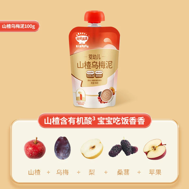| nameOriginal | Akita full infant baby food supplement fruit puree prune strawberry cherry blueberry can suck children's snacks 100g |