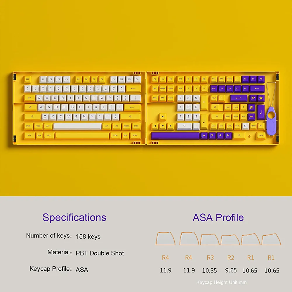 The AKKO LA ASA Profile PBT Keycaps Set comes with a key puller and a collection box, making it easy to install and store. Please note that only the keycaps are sold, and the package includes 1 * 158 Keys Color Matching Keycap Set.