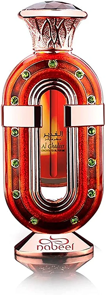 Experience the invigorating blend of citrus and floral with Al Ghadeer 20ml Oil Perfume. Encased in a stunning glass bottle adorned with green stones, this fragrance is sure to lift your spirits with its underlying hint of musk. The warm sandalwood notes are perfectly complemented by the refreshing wave of patchouli.