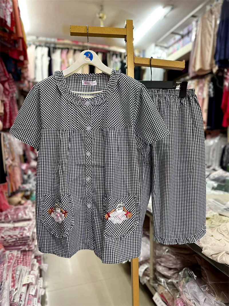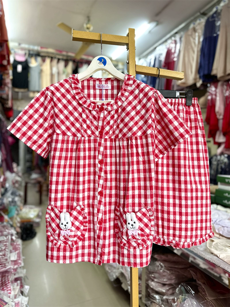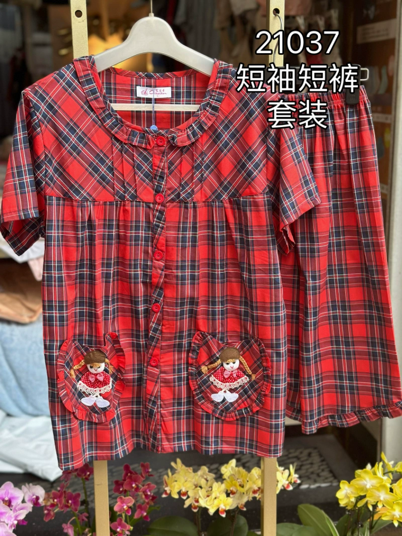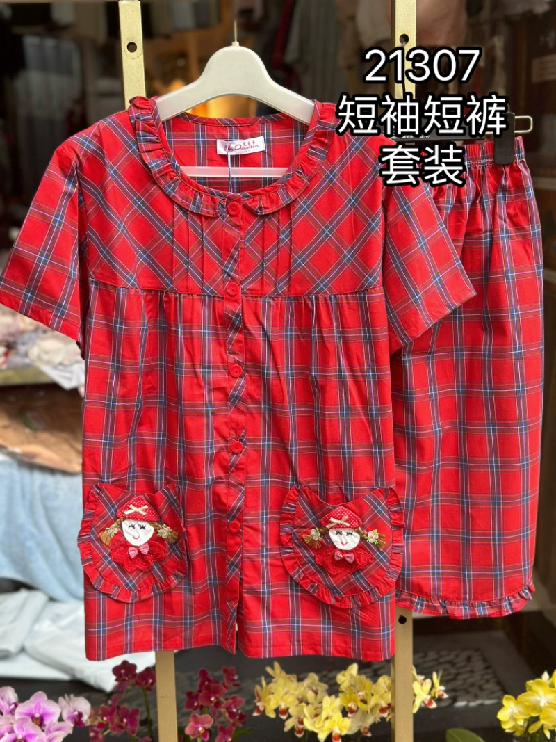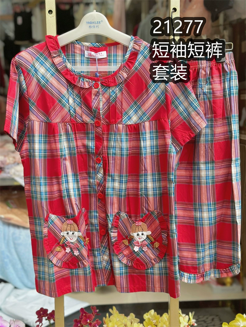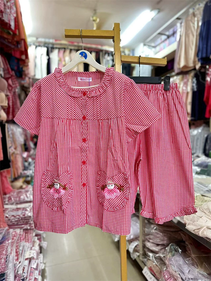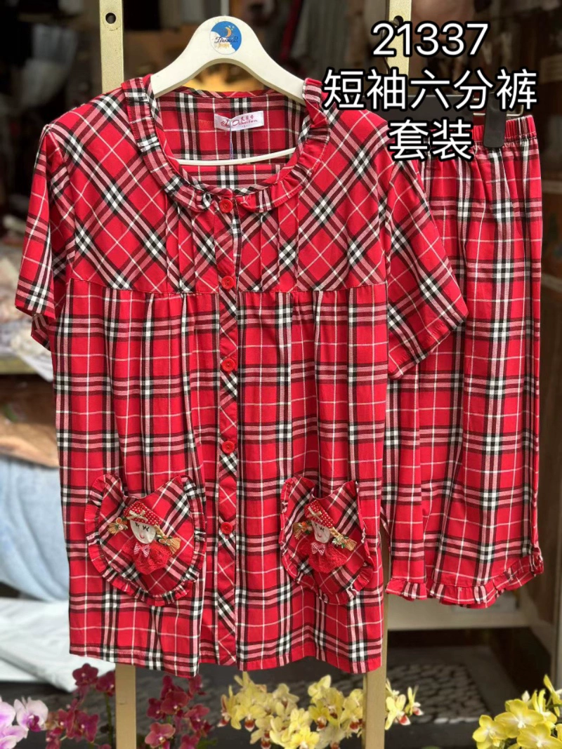 | nameOriginal | Albefen red plaid front button pure cotton and linen women's pajamas |