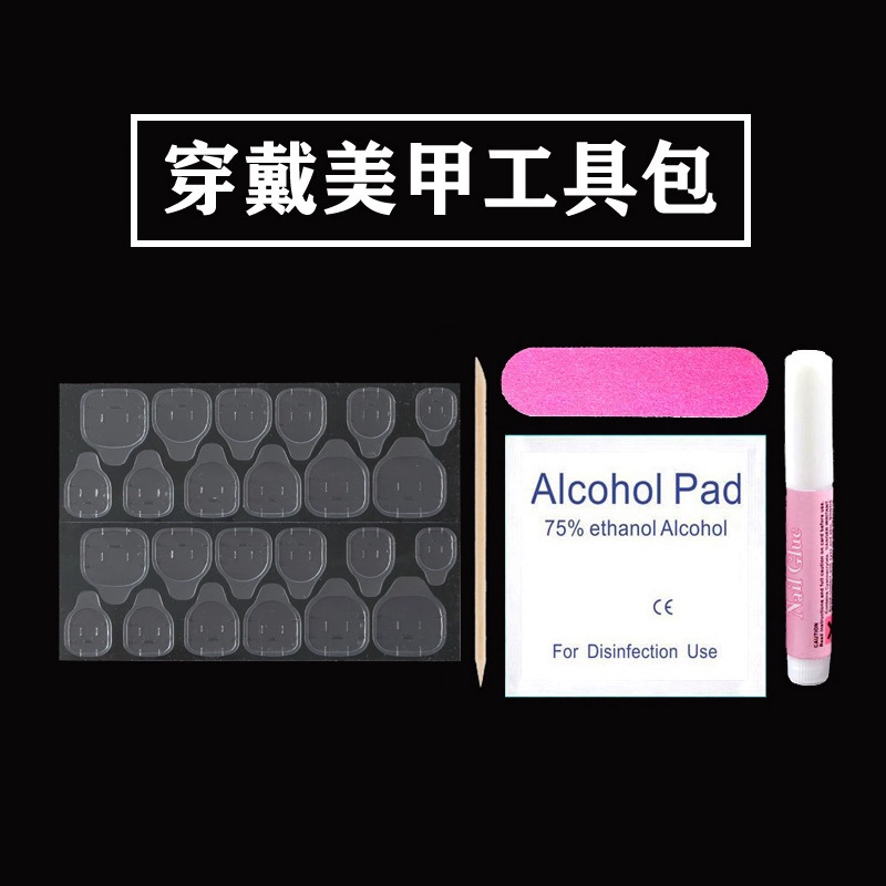 Alcohol cotton pads, orange wood sticks, small rub strips of glue for wearing nails