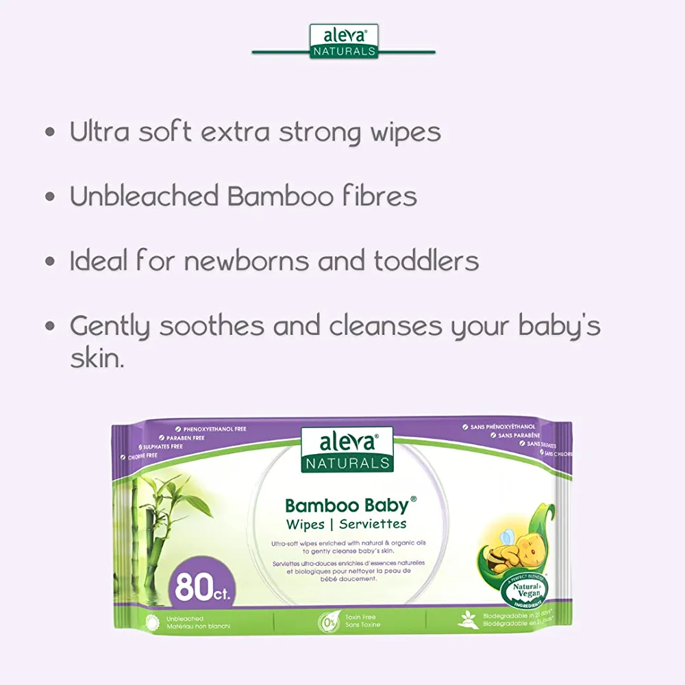 | nameOriginal | Aleva Naturals Bamboo Baby Wipes, Perfect for Sensitive Skin, Extra Strong and Ultra Soft, Natural and Organic Ingredients, Certified Vegan, 6 packs of 80ct – Total of 480ct (37944) |