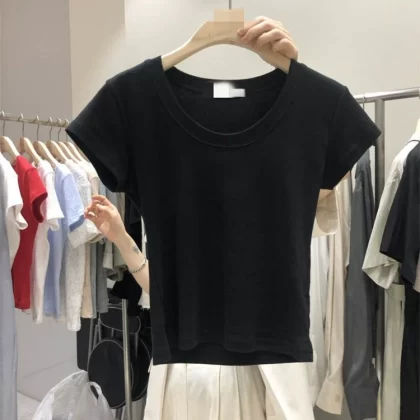 Alexardie Warey Solid Color Round Neck Short Sleeve T-Shirt