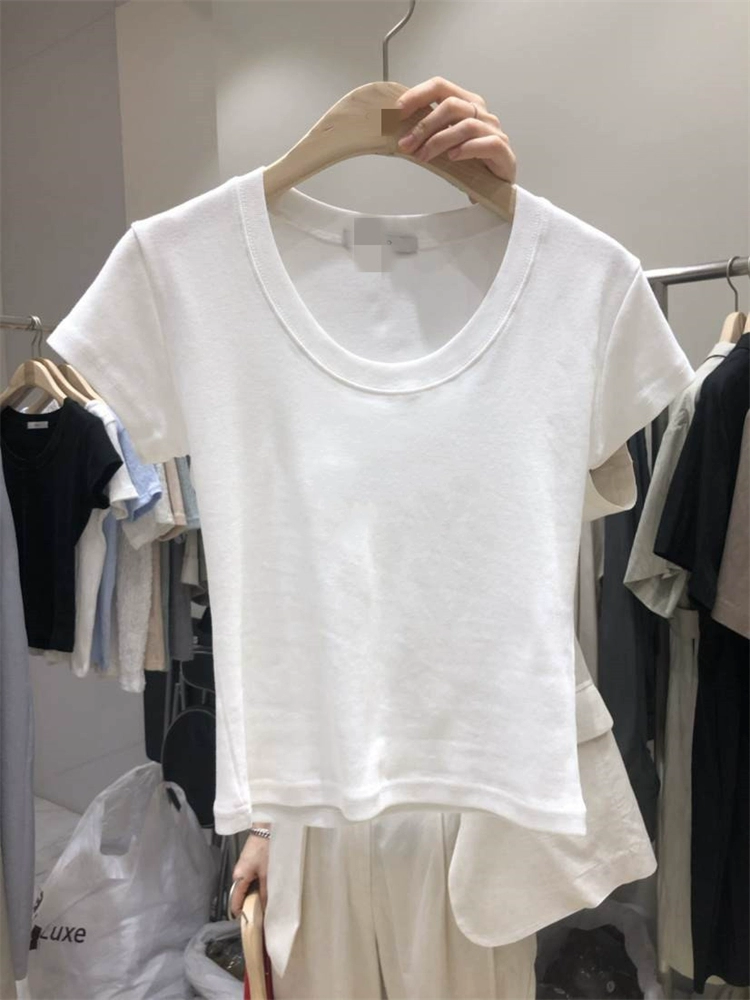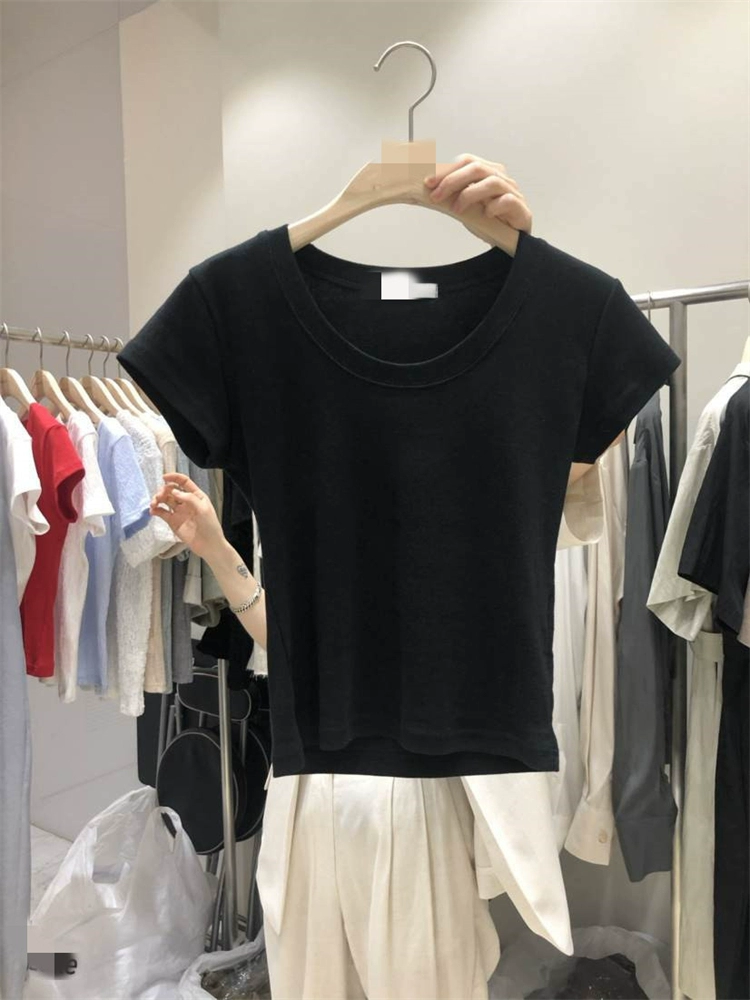 Alexardie Warey pure color round neck short -sleeved T -shirt