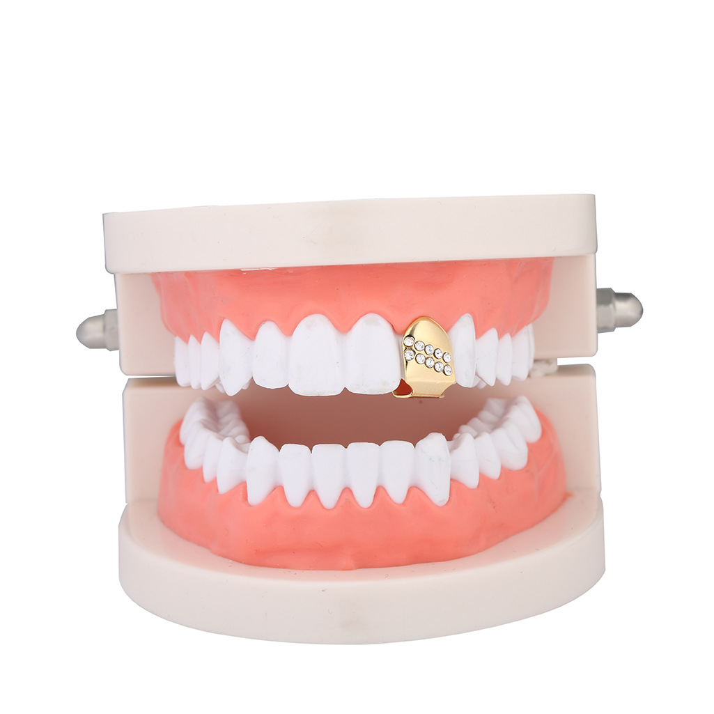 AliExpress Amazon Big Gold Teeth Europe and the United States cross-border single twill Diamond hip-hop gold teeth braces a generation of hair