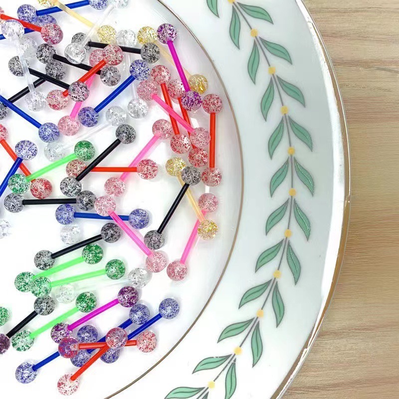 AliExpress Amazon Explosions Acrylic Sequin Tongue Stud Color Soft Rod Tongue Ring Stainless Steel Piercing Jewelry