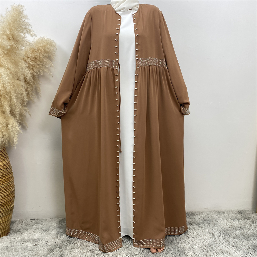 | nameOriginal | AliExpress Amazon Middle East Dubai solid color hot drilling beaded with side pocket Muslim robe dress 1402 |