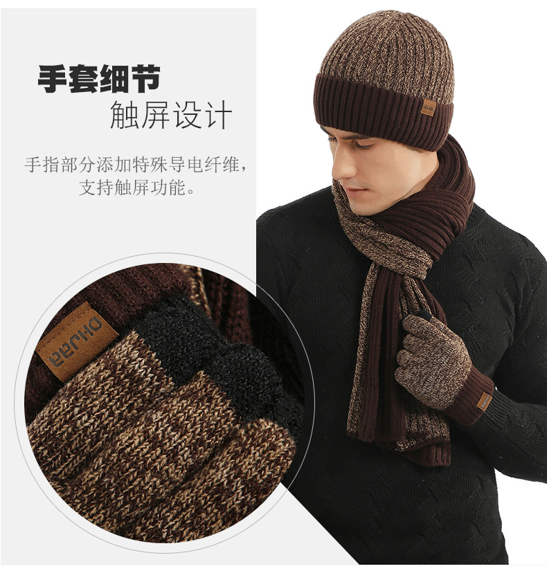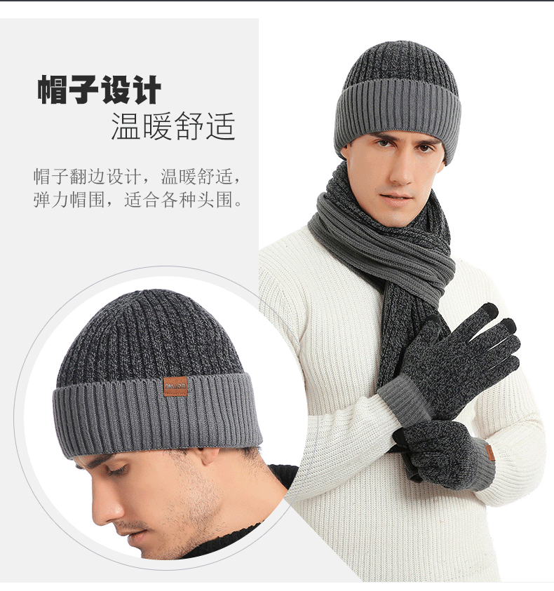 AliExpress autumn and winter new European and American wool hat suit color matching knitted hat thickened scarf gloves three-piece set