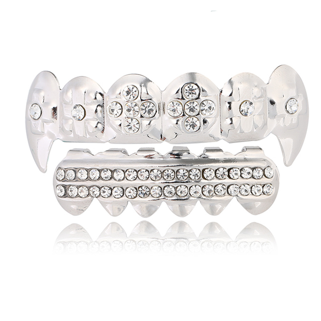 | nameOriginal | AliExpress cross-border hip-hop braces Grillz exaggerated Diamond pointed braces real gold plating personality trendy teeth jewelry |