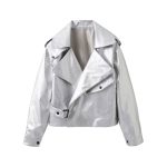 AliExpress cross-border women’s clothing wholesale silver lapel fashion temperament retro loose short PU leather jacket coat