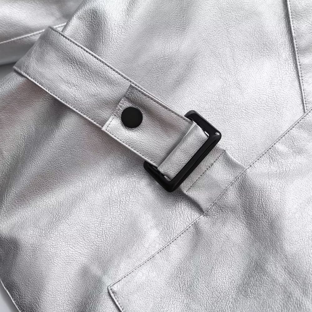 AliExpress cross-border women's clothing wholesale silver lapel fashion temperament retro loose short PU leather jacket coat