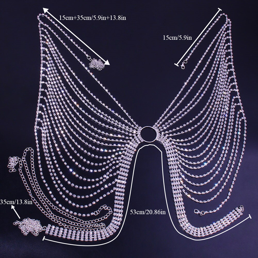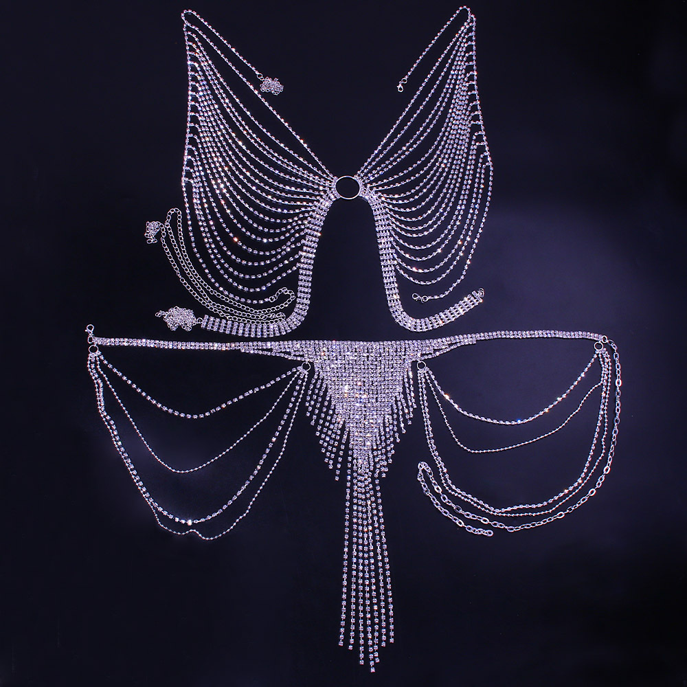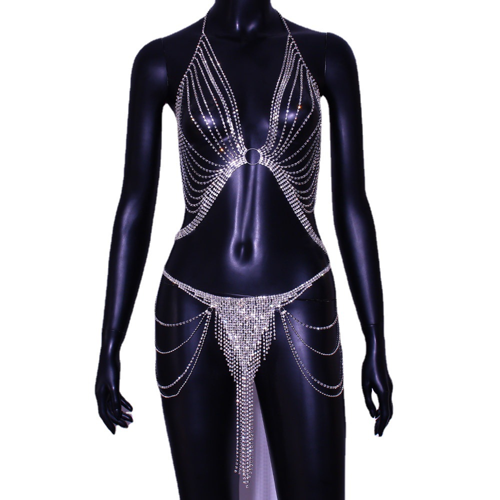 AliExpress European and American style tassel multi-layer Diamond chest chain female nightclub performance sexy low waist body chain chain