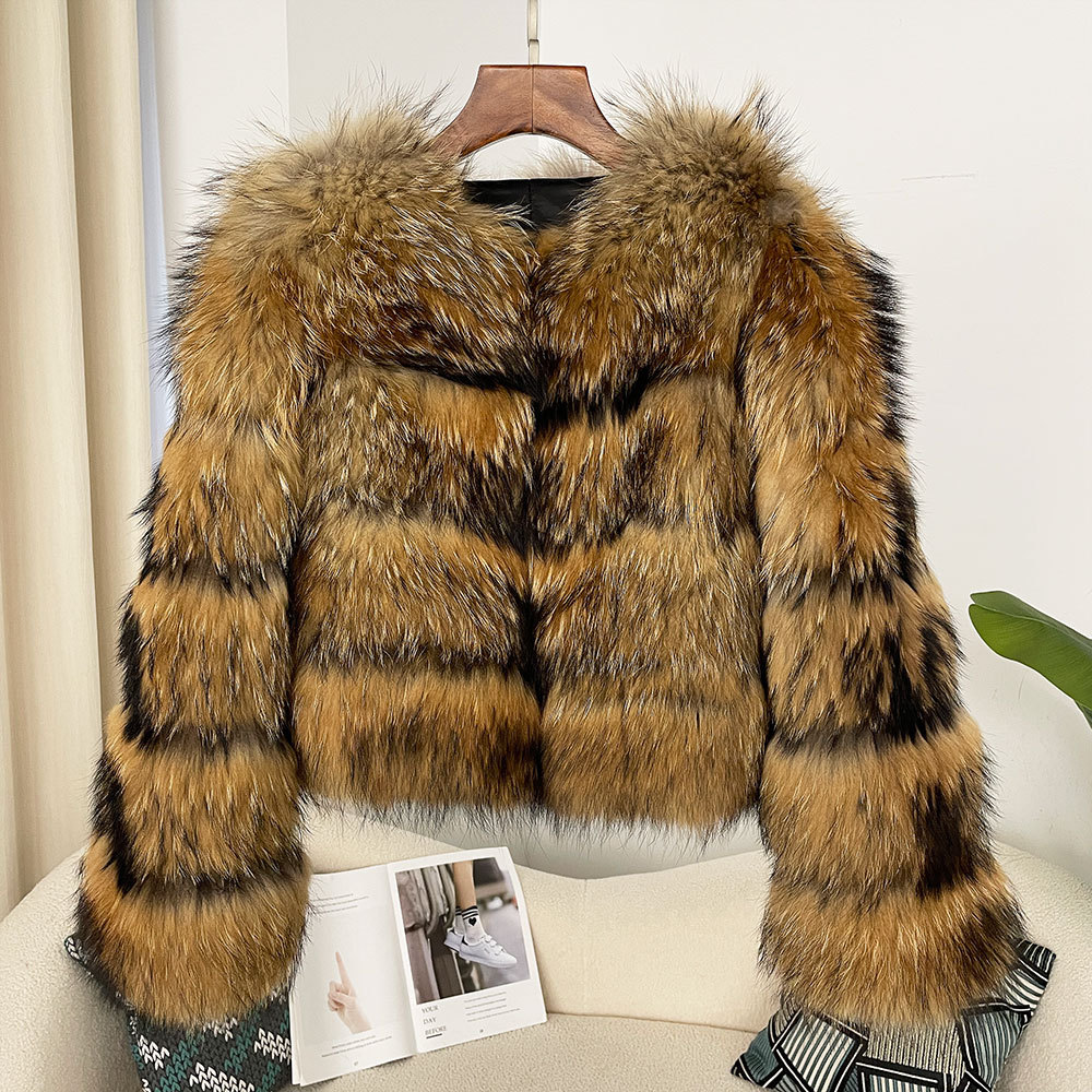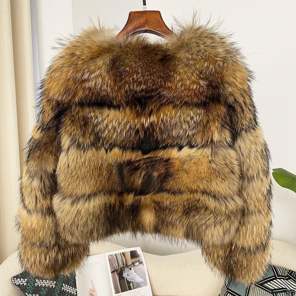 AliExpress Explosions Winter Raccoon Fur Coat Short Women's Top Warm Showing Wealth Mao Mao Jacket