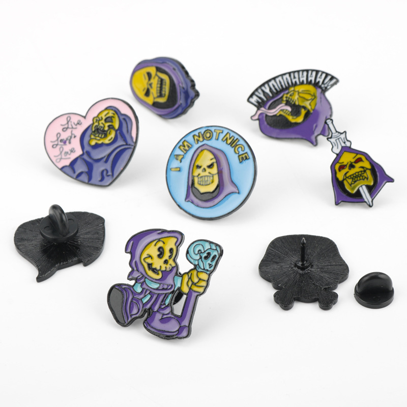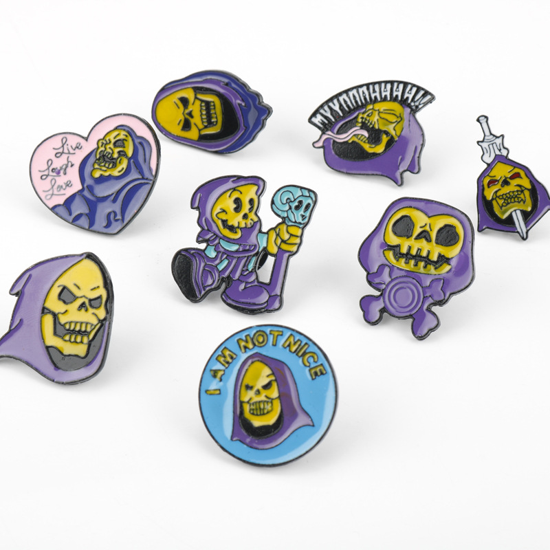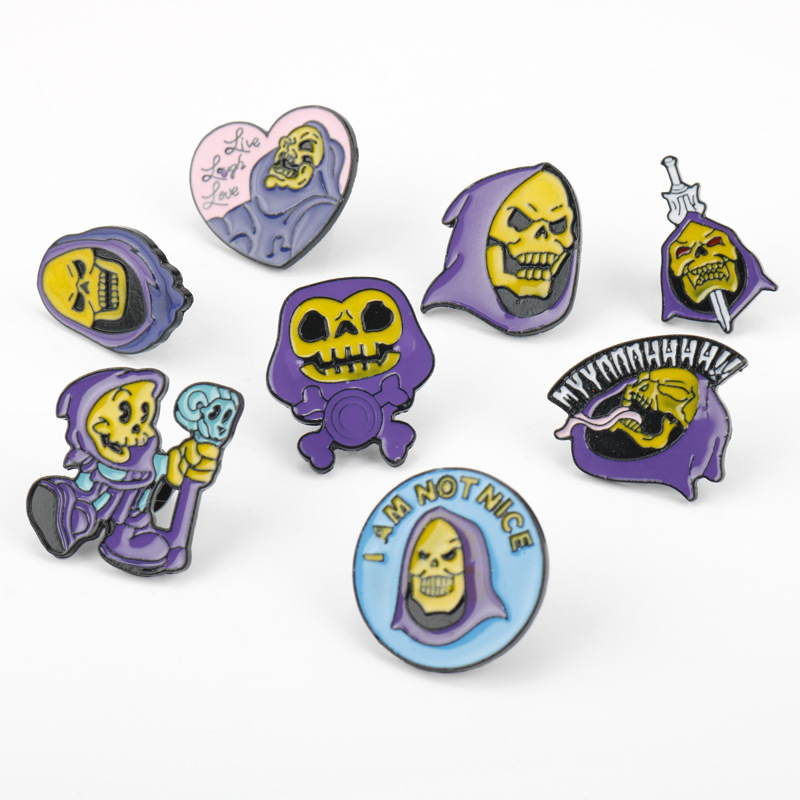 | nameOriginal | AliExpress wish hot sale personalized creative purple headscarf skull enamel brooch badge Halloween jewelry |