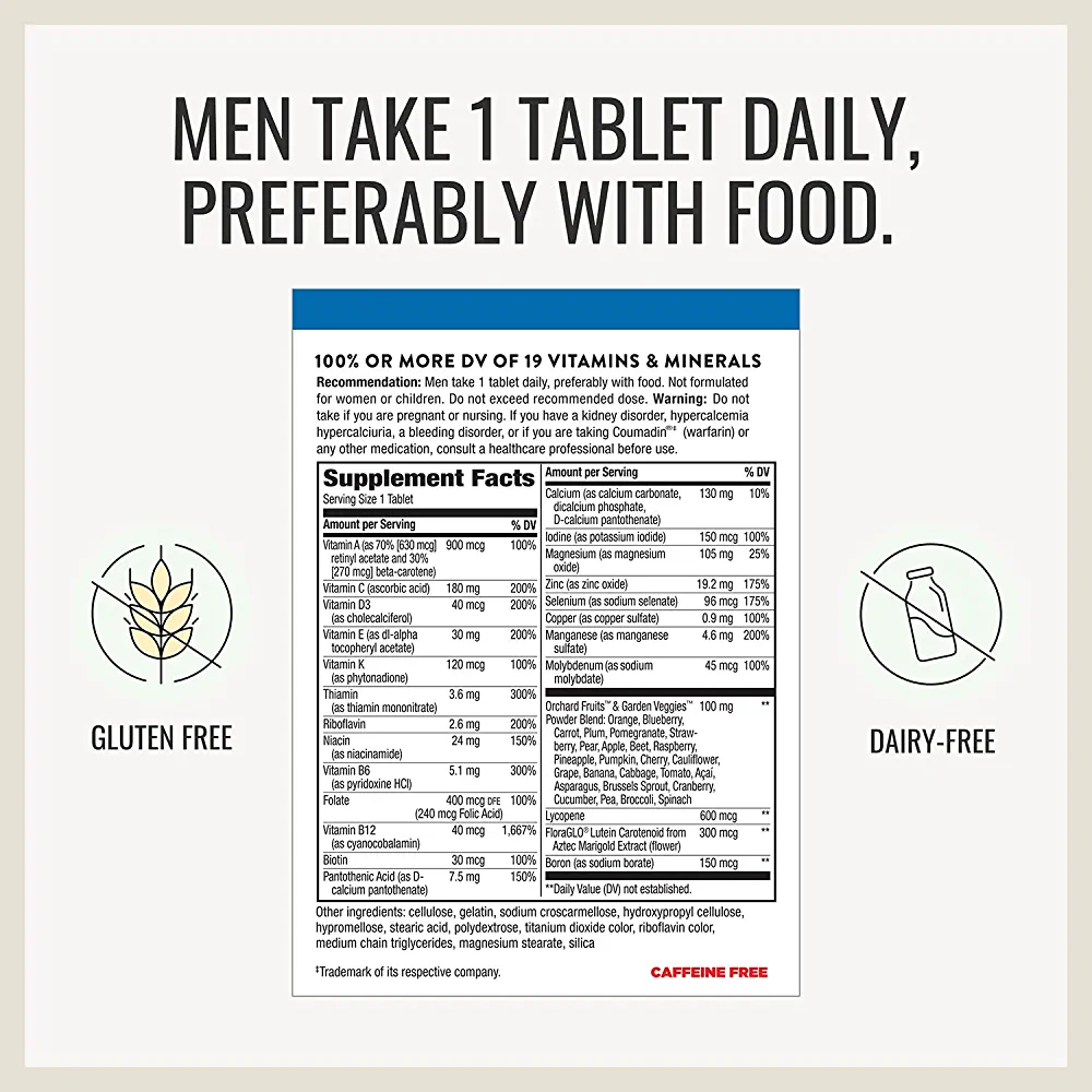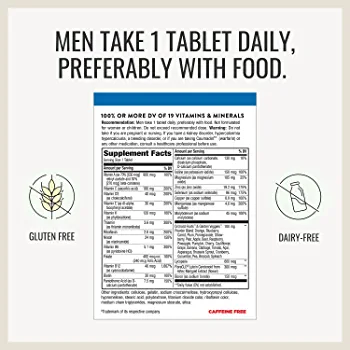 Unlock your full potential with Mens 50+ Complete Multivitamin, a daily supplement designed to promote overall wellness and cellular energy in men over 50. This multivitamin contains 19 essential vitamins and minerals, each at 100% or more of the recommended daily value. It supports 10 key aspects of aging, including heart health, muscle function, thyroid function, immune health, eye health, and cellular energy. The tablets are formulated with the full B-vitamin complex, including high potency B6 to support healthy brain function, allowing you to continue performing at your best.