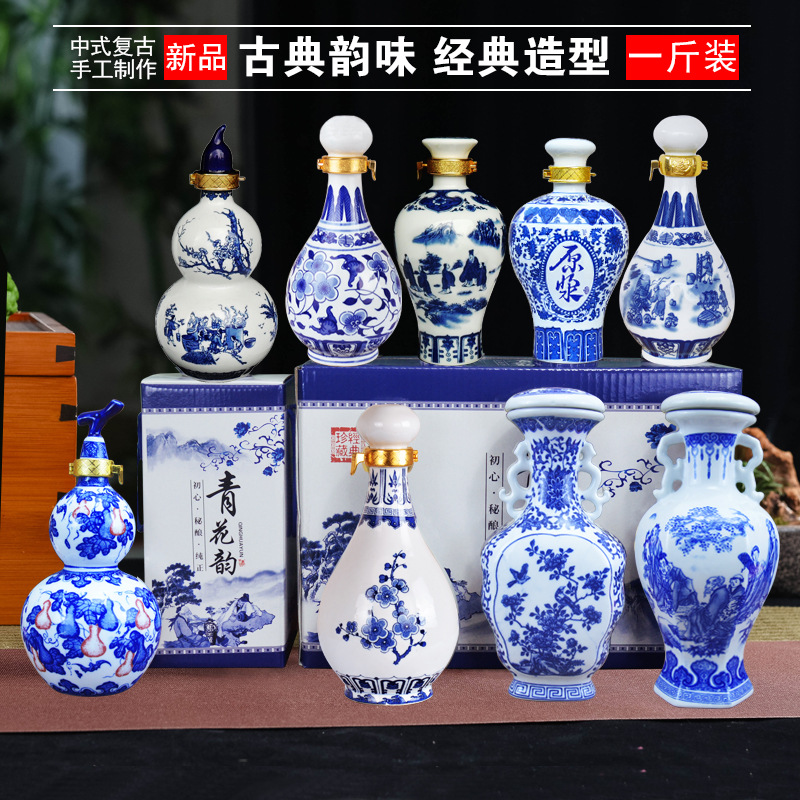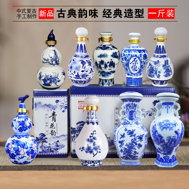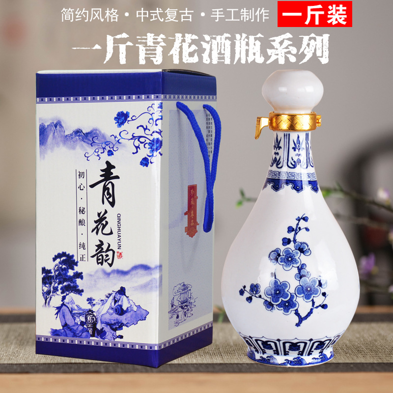 | nameOriginal | ALJ6 ceramic white wine bottle one Jin empty bottle sealed wine jar household 1 Jin wine pot ancient style blue and white porcelain decoration |