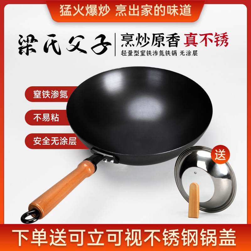 | nameOriginal | ALJ6 household old-fashioned iron pan traditional handmade wok uncoated wok round bottom cooked iron pan non-stick pan |