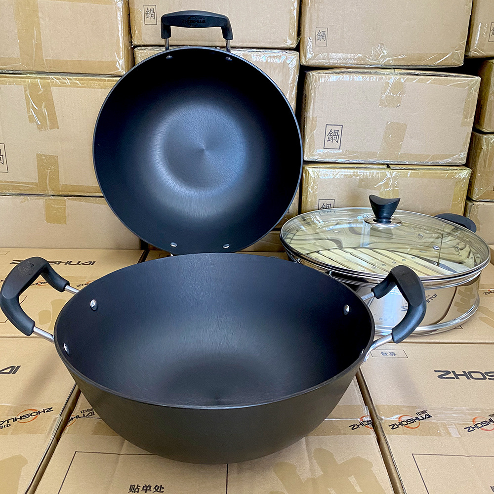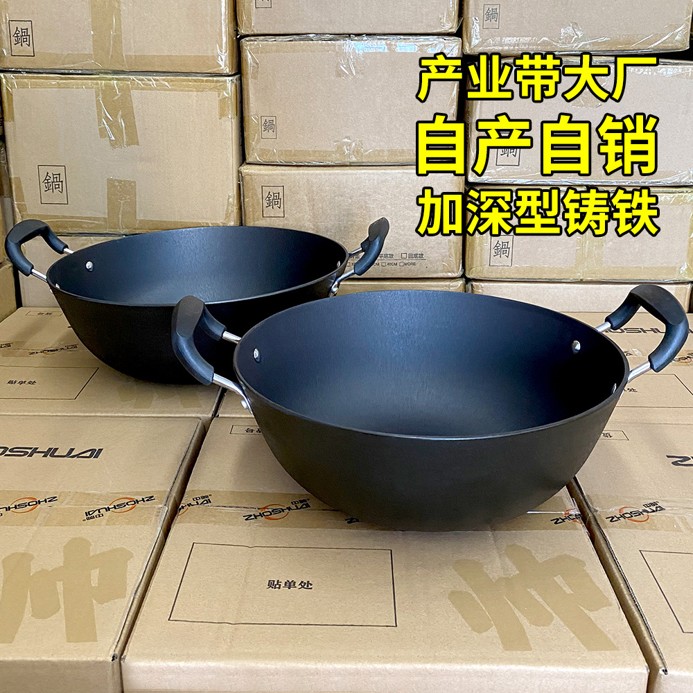 ALJ6 offline micro-flaw double-ear cast iron pot deepening wok old-fashioned cast iron pot uncoated large stew pot induction cooker