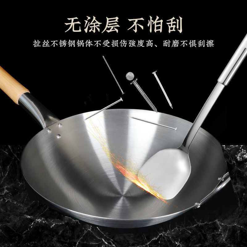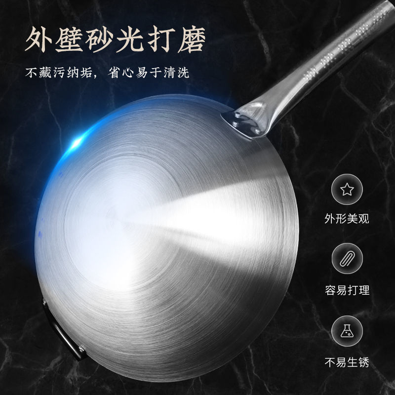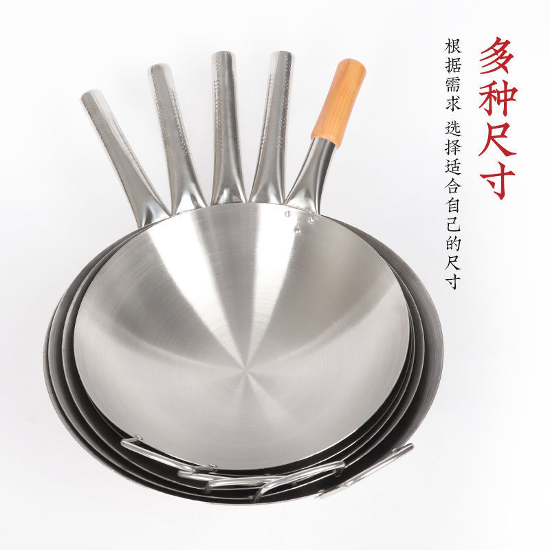 | nameOriginal | ALJ6 stainless steel frying pan thickened hotel frying pan commercial white steel pan non-coated non-rust round bottom stainless steel |