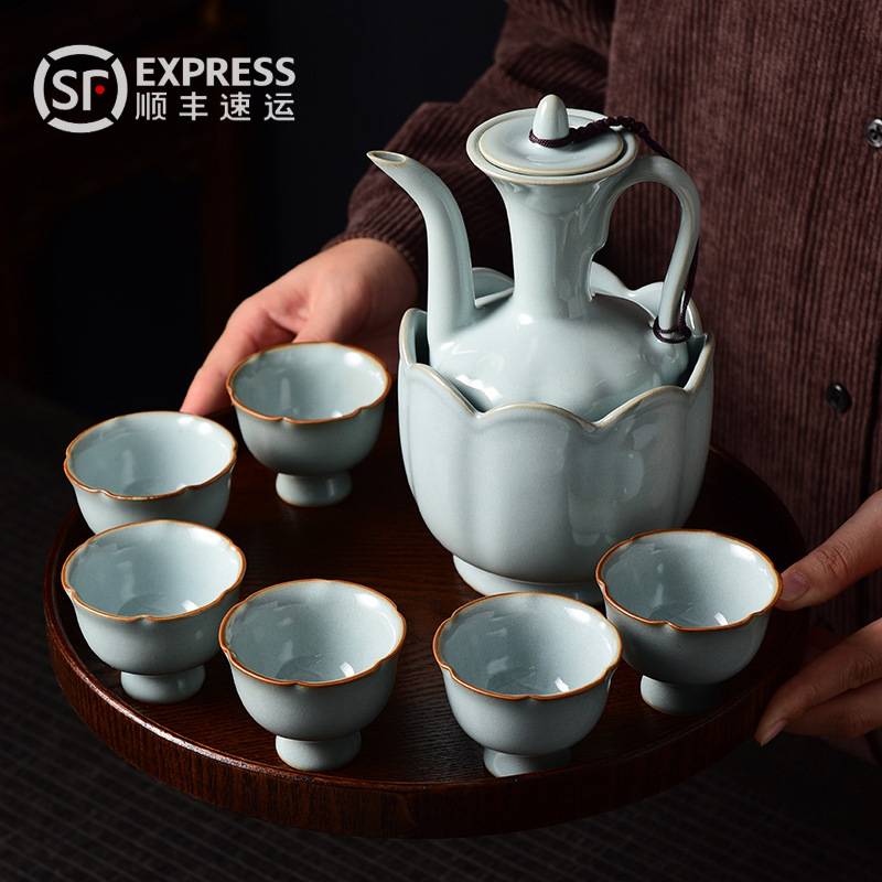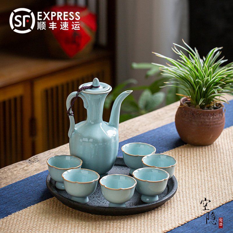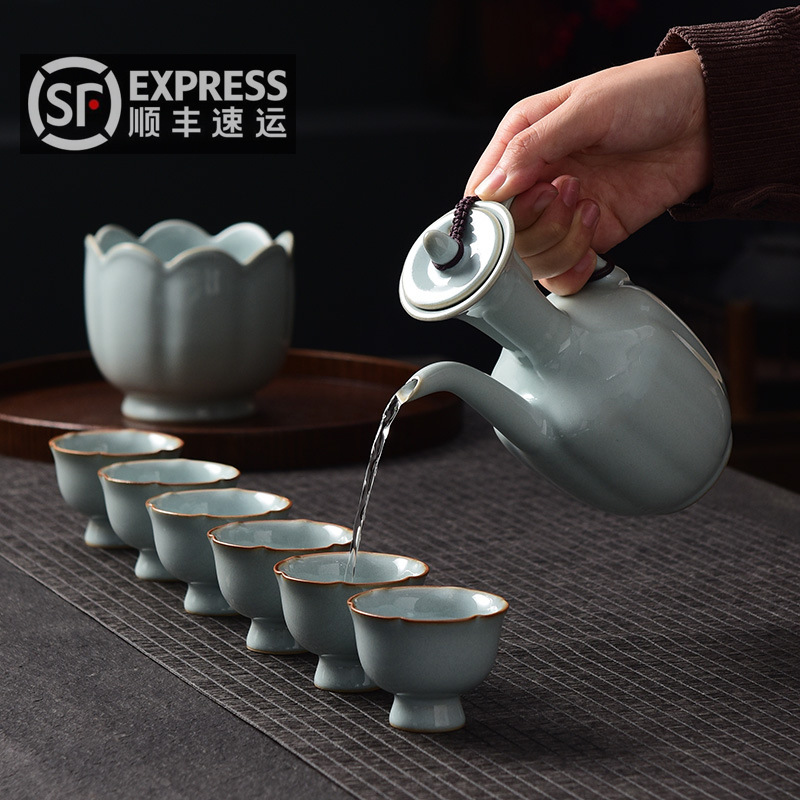 | nameOriginal | ALJ6 white wine glass suit household spirits wine set suit ceramic wine pot clear Ru kiln wine glass antique antique Song Wen |