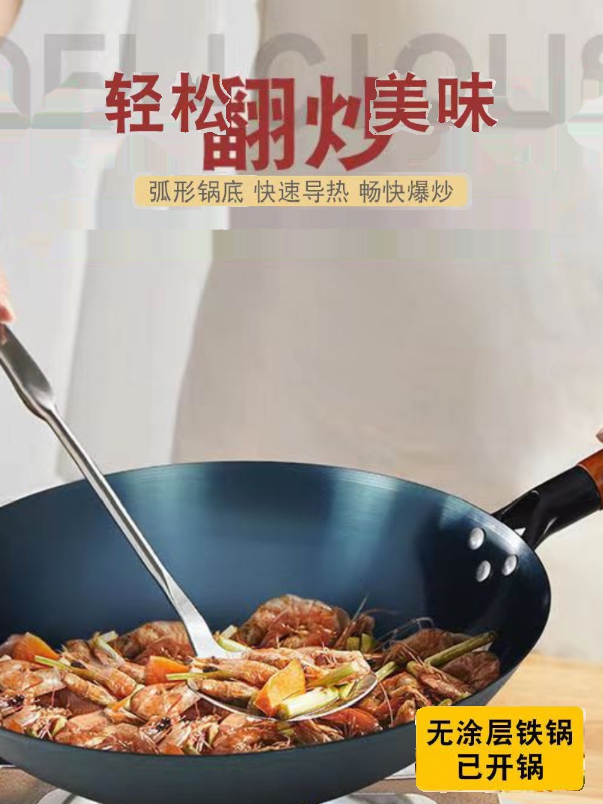 | nameOriginal | ALJ6 wooden handle pure iron pot Zhangqiu old-fashioned cooking pot household natural gas stove uncoated lightweight frying spoon non-stick large |